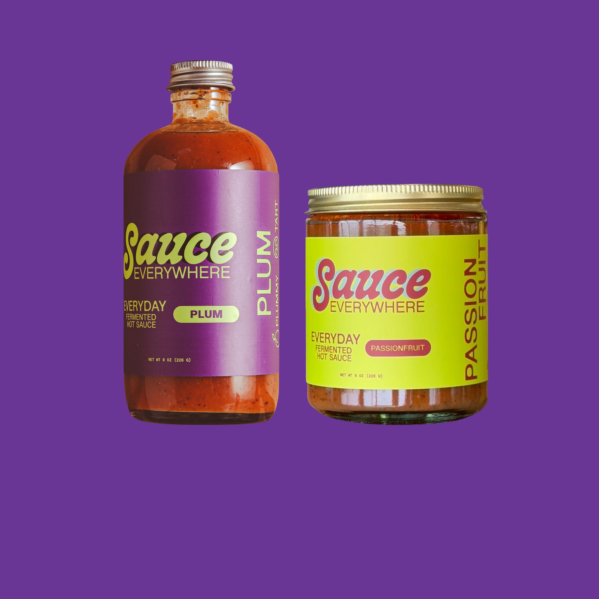 Passionfruit imparts a tropical taste with a subtle seed crunch, while Plum gives a juicy jolt with a crisp finish. Is a sauce ever like a jam? This much is certain: the dynamic duo can always get your victuals out of one.
